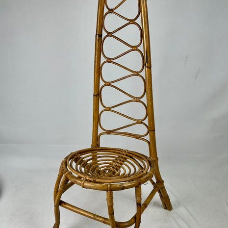 Kombinationen af rotting og bambus skaber en luftig og tidløs helhed, hvilket gør stolen perfekt til både vintage og moderne indretning. Ideel til et børneværelse, legemiljø eller som dekorativt accent.