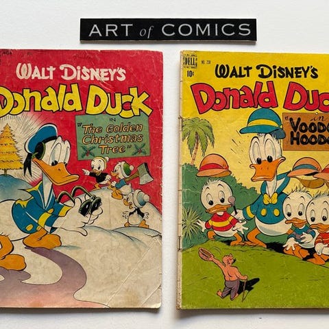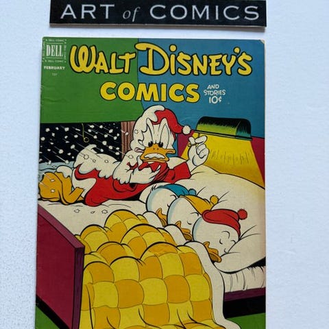 Carl Barks Art er første udgave hæftet tegneserie fra Dell Comics i serien Walt Disney's Comics and Stories fra 1952, tegnet af Carl Barks i Very Fine tilstand. Klik på den blå "gå til varen" knap, for at købe eller byde på denne vare. Den samlede pris vil blive vist inden du afgiver dit bud.