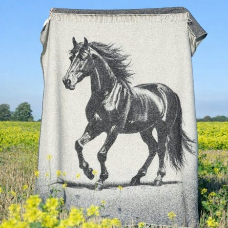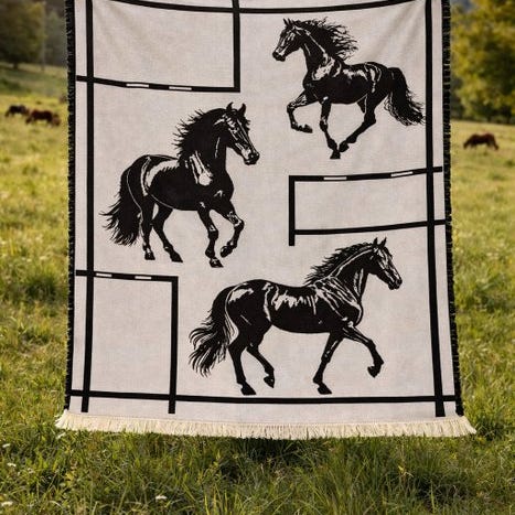 Gobelin i jacquardvæv “Le Cheval Noir” med hest i galop - 185x140 cm - klar t...
