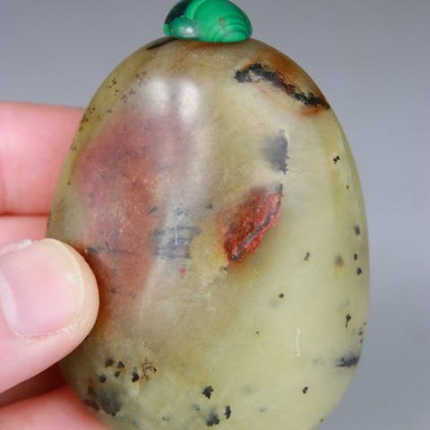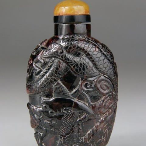 Kinesisk snusboks i agat fra Qing-dynastiet, marmoreret agat i rav og hvidt, glasprop i jade-lignende stil; højde 6,8 cm, vægt 57 g, god stand, fra privat samling, original. Klik på den blå "gå til varen" knap, for at købe eller byde på denne vare. Den samlede pris vil blive vist inden du afgiver dit bud.