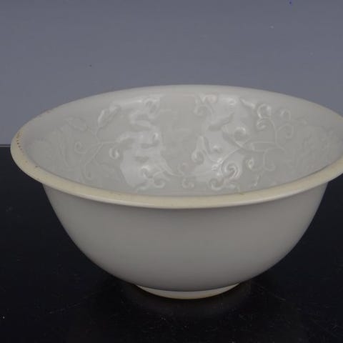 Meget smukt håndmalet skål med figurdekor fra det 18. århundrede (Kangxi-periode 1662-1722). Bunden er Chenghua-mærket, og det sølvhåndtag er også mærket.
