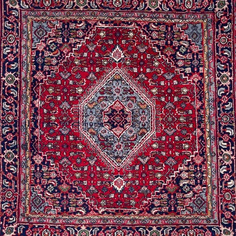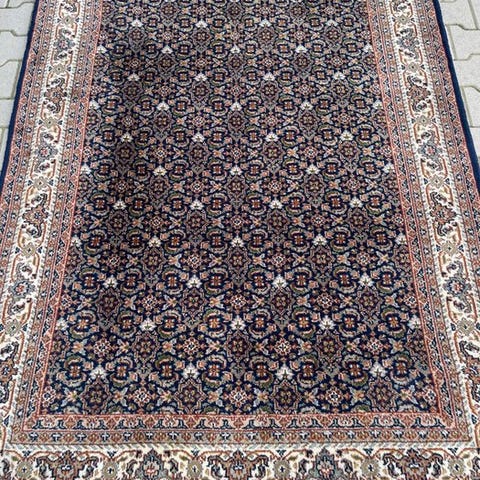 Dette stykke skiller sig ud ved sit klassiske Agra-blomsterdesign, med et centralt felt i bløde cremefarvede nuancer og en kant i rød dekoreret med traditionelle blomster-motiver, hvilket skaber en harmonisk og elegant sammensætning. Det er en ideel tæppe til gange, indgange eller trange rum.