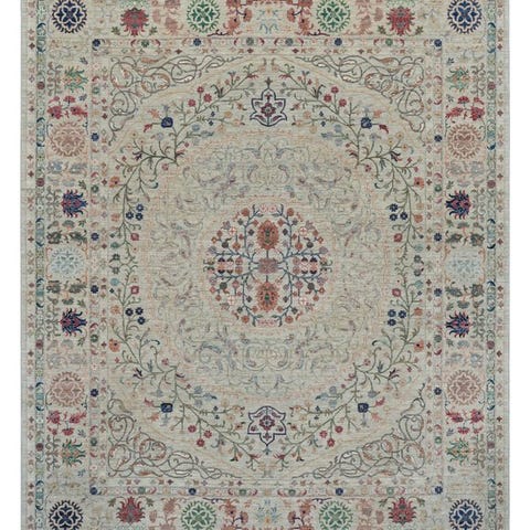 Det detaljefyldte ornamentik fordeler sig harmonisk over hele overfladen og giver tæppet en elegant, næsten antik udstråling. De varme rust- og beige nuancer virker rolige og eksklusive og passer fremragende til både klassiske og moderne indretninger.