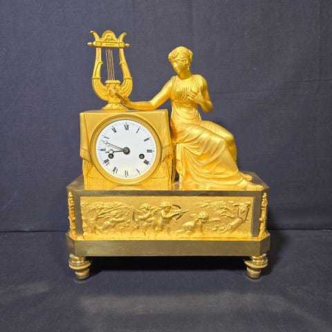 Fransk antik guldforgyldt pendule i god fungerende stand.