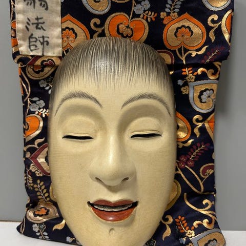 Japansk træ Noh-maske Doji童子, fremstillet af Akira晃 i Japan, underskrevet på bagsiden, mål 21 × 13,5 × 7 cm, i god stand med tegn på ældning. Klik på den blå "gå til varen" knap, for at købe eller byde på denne vare. Den samlede pris vil blive vist inden du afgiver dit bud.