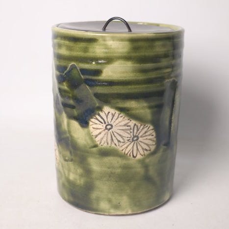 Futagawa'ware stentøjskrukke med fyrretræsdesign - Stentøj - Japan - Omkring ...