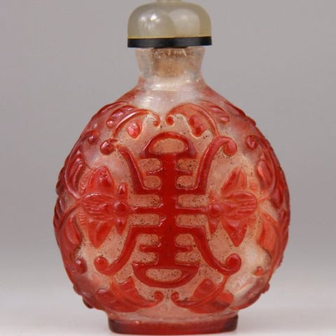 Smuk snusboks i gammelt kinesisk overlay-glas