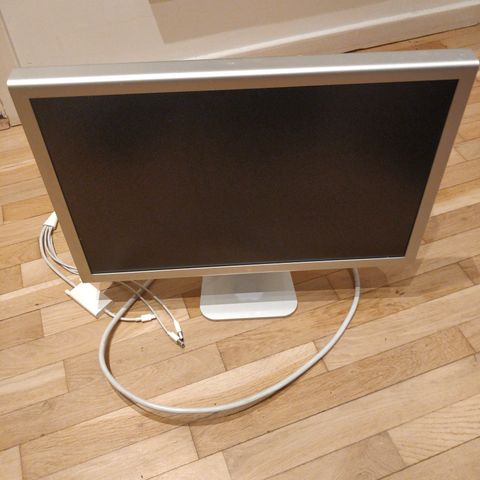 Tilbudt her er en original Apple Cinema Display 22-tommer (Model M8149). Displayet er fuldt funktionelt og i fungerer-tilstand, hvilket gør det til et fantastisk stykke for samlere eller brugere af vintage Apple-hard-ware.