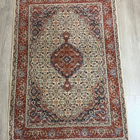 Et håndstrikket orientalsk tæppe i Täbriz Afshan-design, oprindelse Indien, dimensioner 304 × 249 cm, uld på bomuld, i meget god stand, fra slutningen af det 20. århundrede. Klik på den blå "gå til varen" knap, for at købe eller byde på denne vare. Den samlede pris vil blive vist inden du afgiver dit bud.