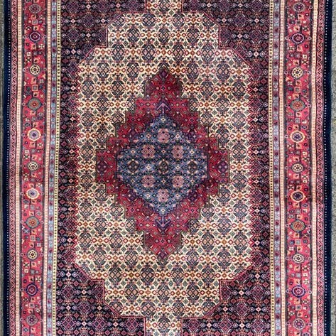 Dette Sarough-tæppe er lavet af uld på bomuld.
