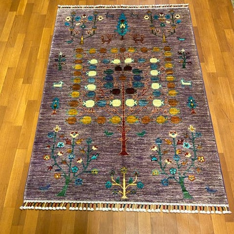 Dette tæppe med uld på bomuld er håndlavet og ubrugt.