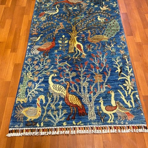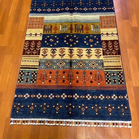 Afghansk uld-på-cotton tæppe, 153 cm langt og 103 cm bredt, fremstillet i Afghanistan i det 21. århundrede, i meget god stand og professionelt rengjort; vægt 6 kg. Klik på den blå "gå til varen" knap, for at købe eller byde på denne vare. Den samlede pris vil blive vist inden du afgiver dit bud.