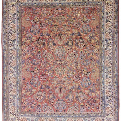 Håndvævet oriental tæppe fra Indien, model Sarouck - Gereinigd, uld på bomuld, størrelse 300 x 246 cm, fremstilling afslutningen af det 20. århundrede, i særdeles god stand og professionelt renset. Klik på den blå "gå til varen" knap, for at købe eller byde på denne vare. Den samlede pris vil blive vist inden du afgiver dit bud.