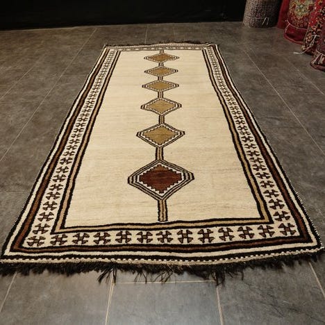 Oprindelsesland: Indien; Gabbeh uld-til-uformet tæppe, 160 × 90 cm, i god stand. Klik på den blå "gå til varen" knap, for at købe eller byde på denne vare. Den samlede pris vil blive vist inden du afgiver dit bud.