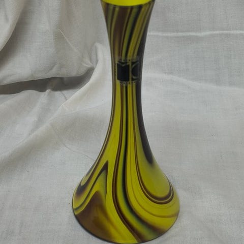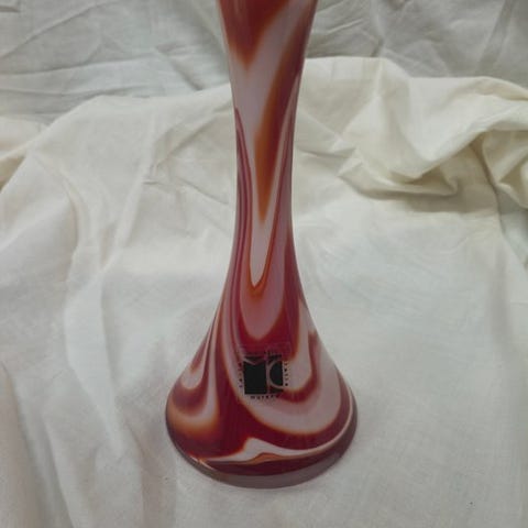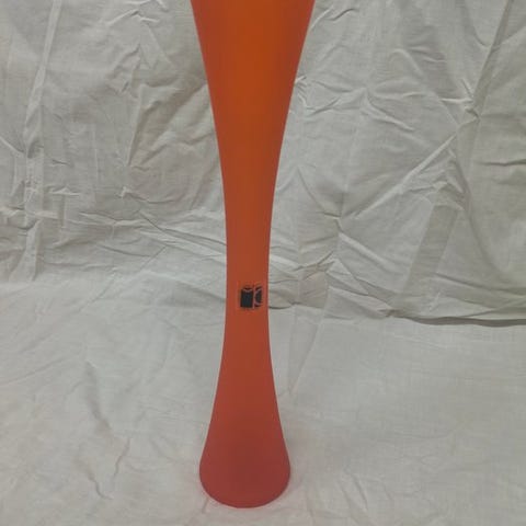 Et oransje-ætsede vase i Murano-glas af Carlo Moretti. Tilstand: perfekt. Målene er: højde 18 cm, øverste diameter 4,7 cm, basdiameter 6 cm; i midten er diameteren 6 cm. Ved berøring føles det som velour på grund af overfladebehandlingen med fluorsyre. I øjeblikket sendes der ikke til USA.