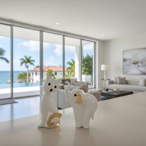 Murano-glas skulpturer, Kat og Elefant med 24 kt guldindlæg