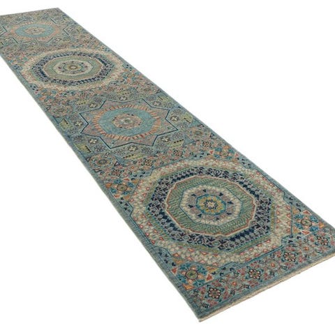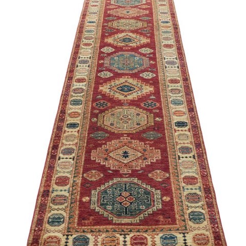 Elegant hånd-knyttet Designer-løber med traditionelt Samarkand-mønster. Det lange, smalle format passer ideelt til gange, entréer eller smalle opholdsrum og giver hvert rum en varm og stilfuld atmosfære.
