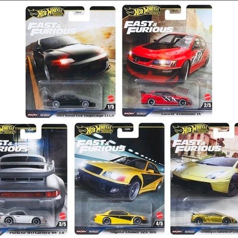 Til auktion udbydes et særligt samlerobjekt: en Hot Wheels-kollektion bestående af 5 modeller, featuring 1 Chase piece and 2 Super Treasure Hunts (STH), hvilket gør dette til en enestående mulighed for samlere.