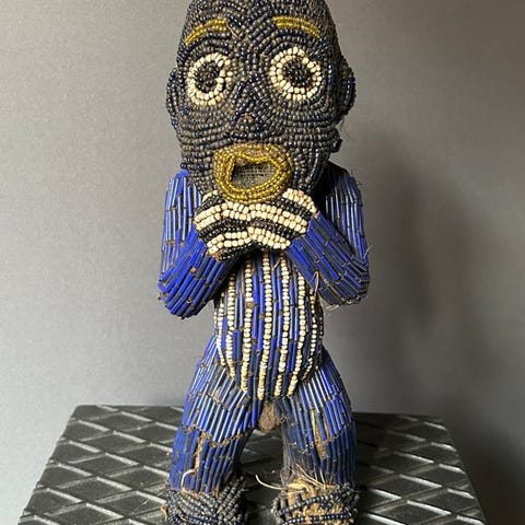 Fin skulpturel lås, også kendt som Ko, Konbalabala eller Konbarabara på Bamana-sproget, i form af en øgle med en lang spids hale, firkantede ben ved siderne og spids mund. Rillet mønster omkring kroppen og langs halen. Mørkebrun, varieret patina. Mindre overfladisk slid, krydslåsen mangler.