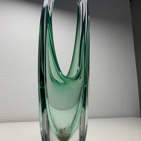 Krystal støbt med grøn graduering, i en organisk flydende form og basen snoet, karakteristisk for modellen.