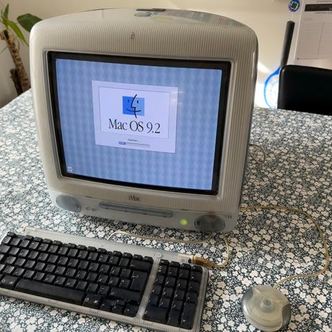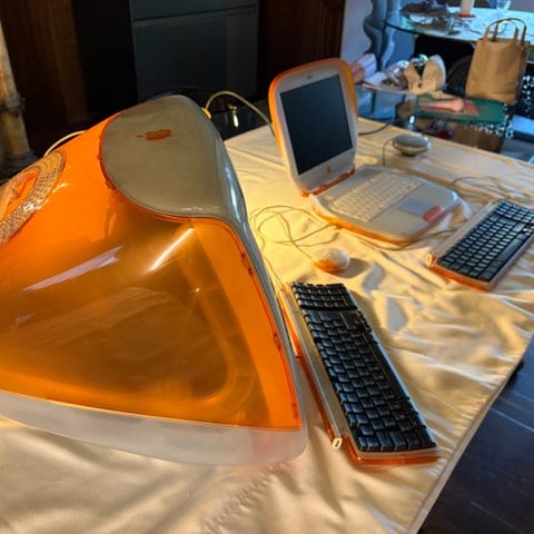 Dette særlige sæt stammer fra tosproget Belgien, hvilket forklarer AZERTY Bondi-tastaturet og den medfølgende dokumentation og software på hollandsk (flamsk) og fransk — en konfiguration som ersværere at finde i dag.