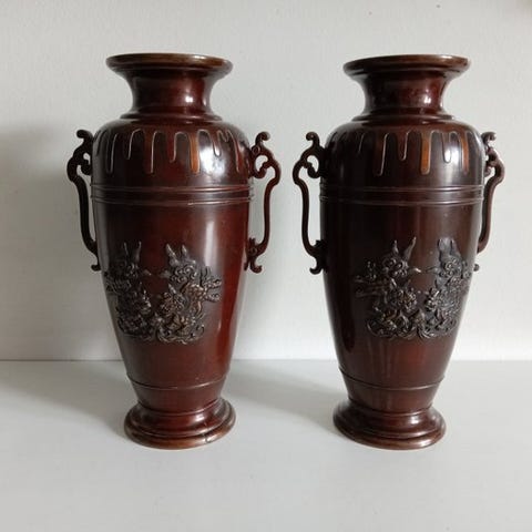 Vase - Bronze, Cloisonné-emaljer - Japan - Meiji-perioden (1868-1912) - Vase ...
