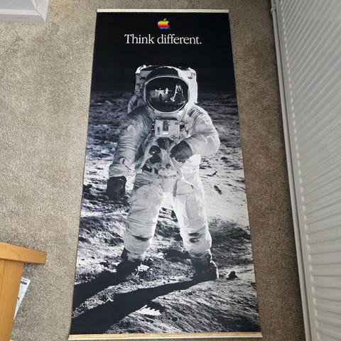 Vintage Apple IIc reklameposter, 1985, i meget god stand. Klik på den blå "gå til varen" knap, for at købe eller byde på denne vare. Den samlede pris vil blive vist inden du afgiver dit bud.