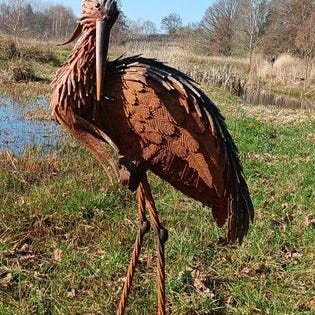 En ekstra stor hejre af metal og jern. Levendeagtigt model. Meget smuk til haven, med smukke farver. Naturlig havepynt. Smuk ved dammen. Dette er en meget stor og mægtig model med følgende mål: