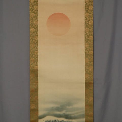 Original Taishō-periode blæk på silke hængekort af Ito Keisui (1880–1967), med titlen Reeds and Geese in Snow, underskrevet Keisui, 1924, 206 cm høj og 45,8 cm bred, monteret i silke med plastiske rulleender, i pæn tilstand med forbrændinger og pletter på billedet og ophænget. Klik på den blå "gå til varen" knap, for at købe eller byde på denne vare. Den samlede pris vil blive vist inden du afgiver dit bud.