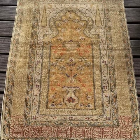 - Smukt figureret tæppe i silke på bomuld, tyrkisk Kayseri-tæppe.