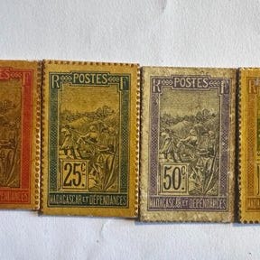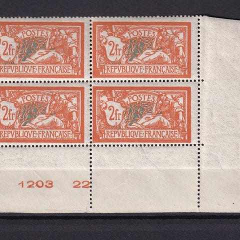 Krigs- eller nødmynter * Et frimærke med det ekstraordinære * La Réunion 1918. Gyldig for 5c, 10c, 25c i karton underskrevet af præsident Georges Jacquier.