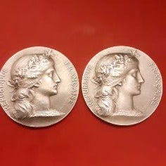 Tre krigs- eller nødvendighedsmønter fra Réunion, 1918, i fraktionerne 5c, 10c og 25c, i en æske signeret af præsident Georges Jacquier. Klik på den blå "gå til varen" knap, for at købe eller byde på denne vare. Den samlede pris vil blive vist inden du afgiver dit bud.