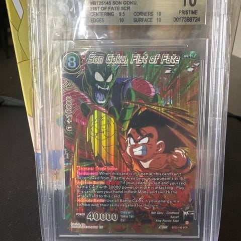 En spektakulær kort af Son Goku SS4 super alternativ art graderet Beckett 10, pristine gold label, er nu tilgængelig, et stykke af højeste sjældenhed! Dens tilstand er fremragende, næsten perfekt (Near mint), et virkelig skat for enhver samler. Opbevaret med største omhu, denne kort udgør en unik mulighed. Lad ikke denne undslippe jer for at berige jeres samling. Perfekt for elskere af Dragon Ball-verdenen. Et ægte smykke at udstille.