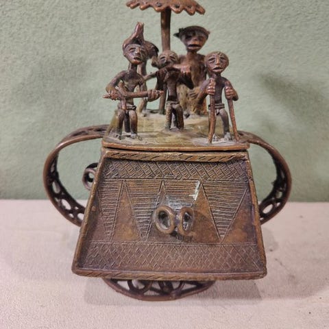 Lederskabet i Asante-imperiet, med dets mange stater og et komplekst hierarki, var patroner for et kompleks af regalia, symboler og ordsprog, der reflekterede over den kongelige status, storhed og de personlige kvaliteter hos suverænen. Historisk set kunne kun kongelige og medlemmer af deres følge eje ædelmetaller som lokalt udvundet guld (sika) og importeret sølv. Akan-guldproduktion begyndte sandsynligvis i andet halvår af det femtende århundrede og gav ved 1900 omtrent fjorten millioner ounces metal. Guld cirkulerede i pulverform (sika futuro) som valuta i Asante-imperiet og mange af dets naboer indtil 1901; når det ikke blev akkumuleret som personlig formue, blev guldstøv smeltet ned og støbt til moderne pynteting.