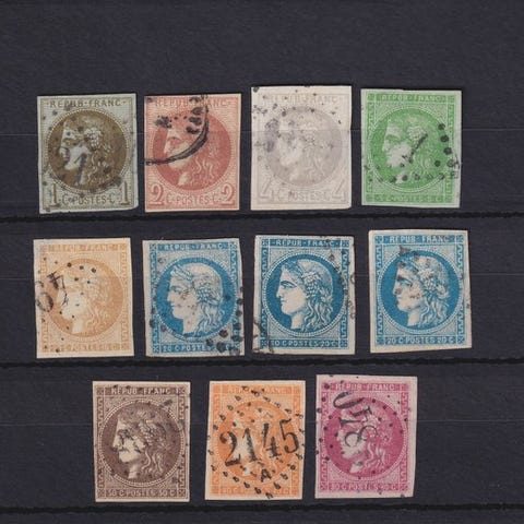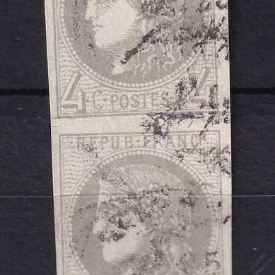 Fransk oprindelse, frimærke med titel 'Signé Calves, Bordeaux 1ct gris olive report 1, 2ème état', tilstand: Neuf avec charnière, fra 1870, katalogiseret som Yvert n°39Ad. Klik på den blå "gå til varen" knap, for at købe eller byde på denne vare. Den samlede pris vil blive vist inden du afgiver dit bud.