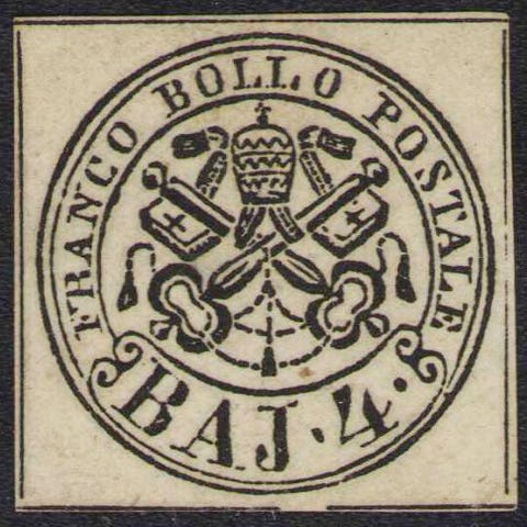Antikke Italieniske Stater - Paveindehaverenes Stats, 4 baj, fra 1852, nyt med linguella, Sassone 5, RD-certifikat. Klik på den blå "gå til varen" knap, for at købe eller byde på denne vare. Den samlede pris vil blive vist inden du afgiver dit bud.