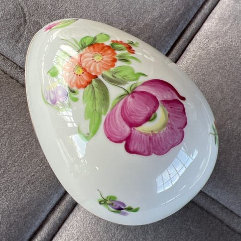 Herend porcelæn stor amphoravase, model 7176 med Eton-dekor og guldstaffage, håndmalet på glasur, højde 33,2 cm, bredde 12,5 cm, dybde 12,0 cm, vægt 1,151 kg, fremstillet i 1976 til 150-års jubilæet, i fremragende brugstilstand med minimale slitage og en let slid på guldet et sted. Klik på den blå "gå til varen" knap, for at købe eller byde på denne vare. Den samlede pris vil blive vist inden du afgiver dit bud.
