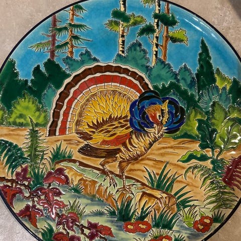 Longwy emaljeret tallerken; overfladen er lidt ridset. Fotosene fuldender beskrivelsen.