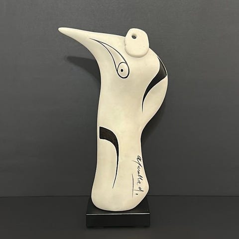 Sardegna (Cagliari) er en keramisk hovedstatue fra 1937 af Mola for Essevi, udført i flerfarvede toner (hvid, blå, orange, guld, sort og beige), signeret ved basen og med Essevi Italia-mærket, i Art Déco-stil, 16 cm bred, 22 cm høj og 10 cm dyb, i fremragende stand. Klik på den blå "gå til varen" knap, for at købe eller byde på denne vare. Den samlede pris vil blive vist inden du afgiver dit bud.