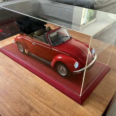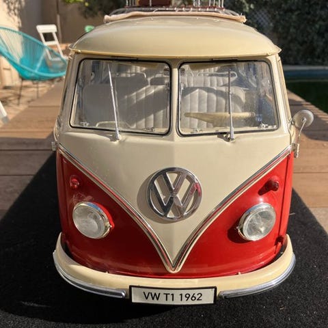 Hachette Volkswagen Beetle i 1:8-skala, grøn, resin, i næsten ny stand, komplet med trailer og campingudstyr, batterier inkluderet og elektrisk system fungerer. Klik på den blå "gå til varen" knap, for at købe eller byde på denne vare. Den samlede pris vil blive vist inden du afgiver dit bud.