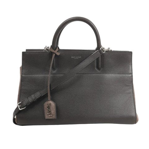 Saint Laurent Le 5 à 7 Small model i sort hamret læder og hardware i lys bronzefarvet messing.