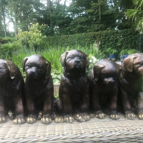 Skulptur, Pig sitting - 20 cm - Patineret bronze