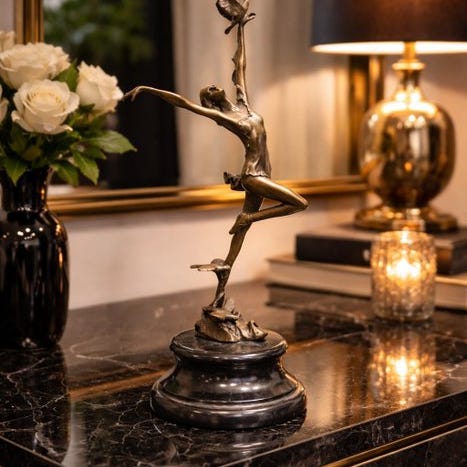 Bronze-marmorskulptur med titlen 'eygptische danderes' fra Europa i fremragende stand, dimensioner 55 × 20 × 12 cm (H × B × D) og signerede på pladen. Klik på den blå "gå til varen" knap, for at købe eller byde på denne vare. Den samlede pris vil blive vist inden du afgiver dit bud.