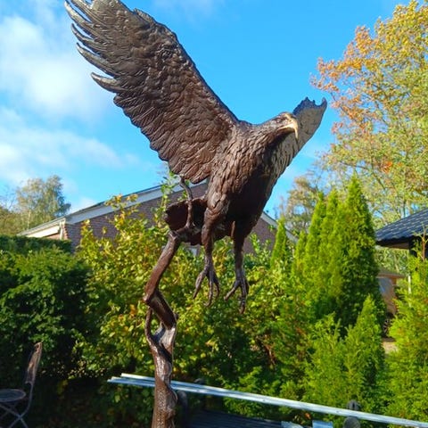 Smuk bronzeskulptur af to flyvende fugle. Af høj kvalitet. Havørne. Skulpturens mål er som følger: