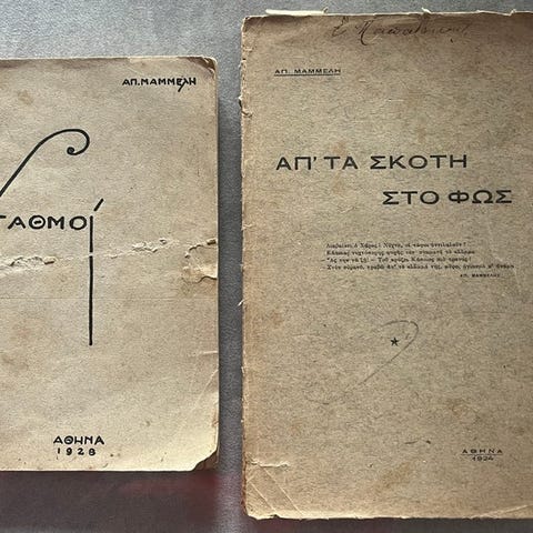 Et sjældent og eftertragtet signeret sæt af Γλυκοχάραμα (Sweet Dawn) af Menelaos Lountemis, en hjørnesten i moderne græsk litteratur.