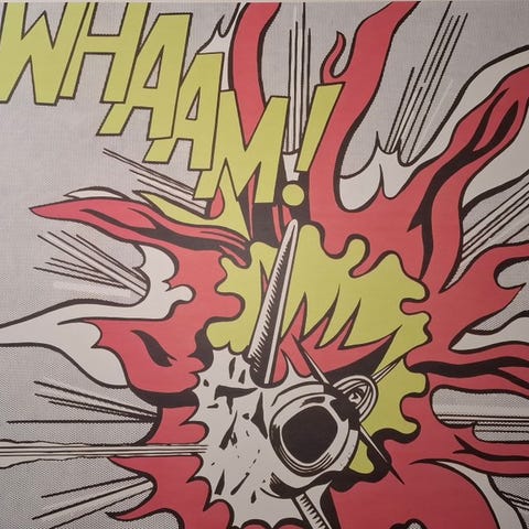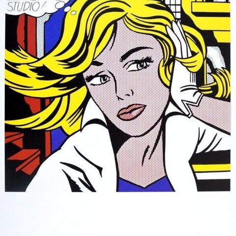 Roy Lichtenstein med copyright 2013 og fodnote om seriens autorisation.