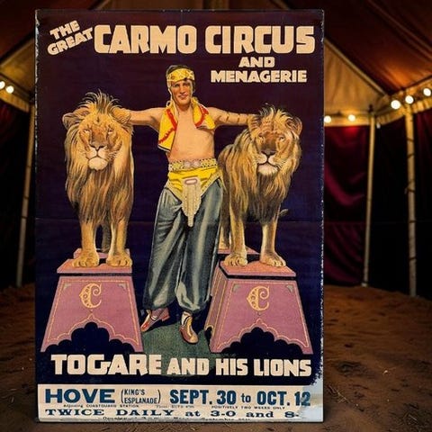 Kvinden savet i stykker, Cirque Palmarium. (Folder, små rifter.) Højde: 29 cm; Bredde: 38 cm.