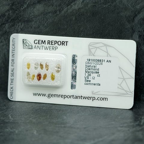 Naturlig 0,70 ct marquise brillant-slibet diamant, lys gul farve, VS2 klarhed, IGI-certificeret og forsegret af laboratorium, vægt 0,70–0,89, god symmetri og meget god polering. Klik på den blå "gå til varen" knap, for at købe eller byde på denne vare. Den samlede pris vil blive vist inden du afgiver dit bud.