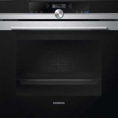 Siemens indbygningsovn i rustfrit stål og sort glas. Ovnen er integreret i køkkenmodul og har elektronisk display samt drejeknapper til betjening. Velegnet til indbygning i standard køkkenelementer. Yderligere tekniske specifikationer som mål, energiklasse og modelbetegnelse fremgår typisk af typeskiltet på produktet.