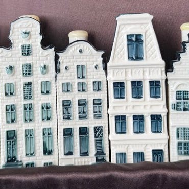Fire Delft blå KLM/Bols husfigurer, modellerne 80, 81, 85 og 86, i fremragende stand med minimale brugsspor og aldersrelateret slid, hver ca. 9 cm høj, 7 cm dyb og 7 cm bred. Klik på den blå "gå til varen" knap, for at købe eller byde på denne vare. Den samlede pris vil blive vist inden du afgiver dit bud.